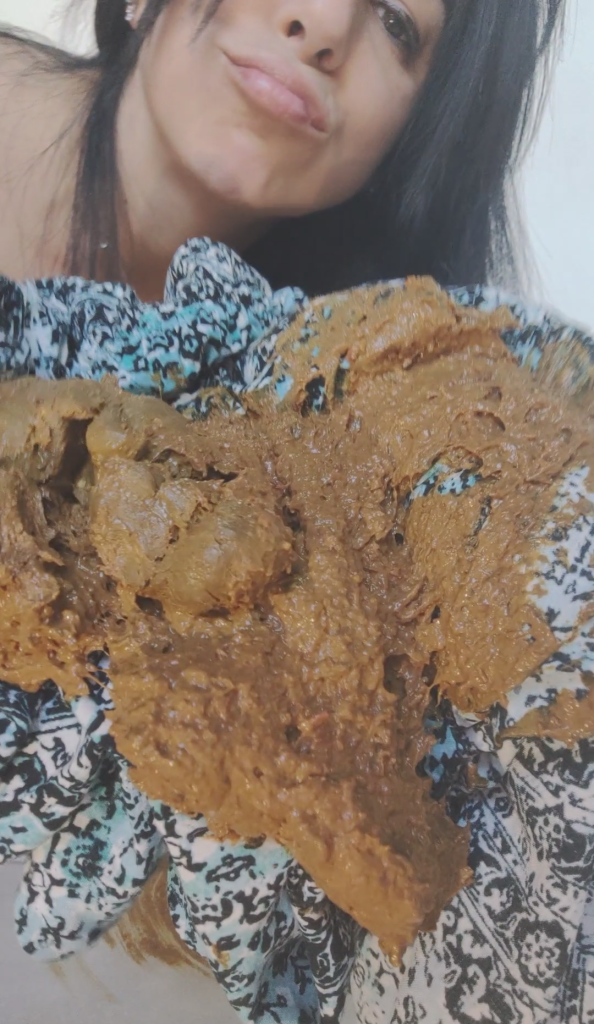I make a huge trunk of shit,I smell it,I get ecxito and start playing with my pussy,the smell was very strong and made me want to crush my shit with my dress,then I take it off and clean the floor with it…I would send it to you to the dress with my christmas present shit.